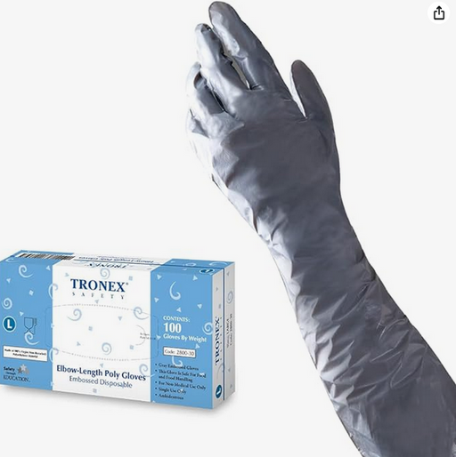 AMAZONTRONEX 18" Elbow Length Large Polyethylene (PE) Cleaning Disposable Gloves, Long Grey Large Poly Disposable Gloves