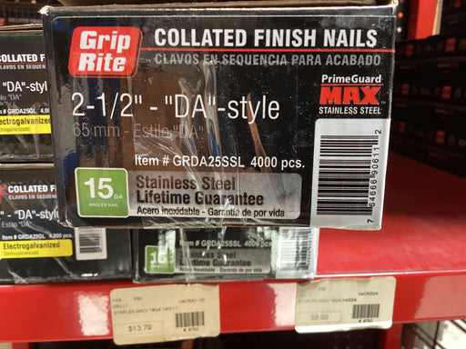 View full detailsGRDA25SSL 2-1/2 15GA SS NAILS